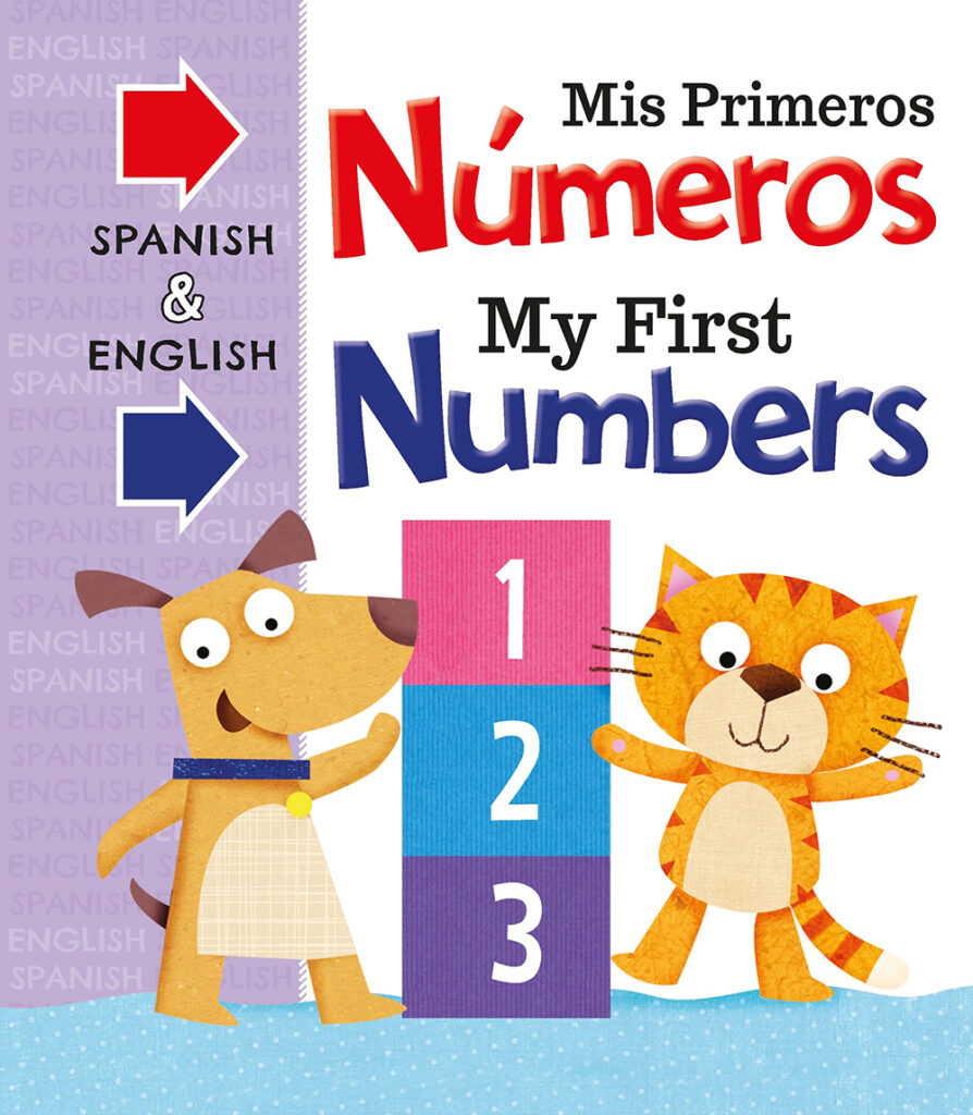 Learn to count with Gato and Perro in My First Numbers Spanish and English. Perfect for bilingual children and early language learners.