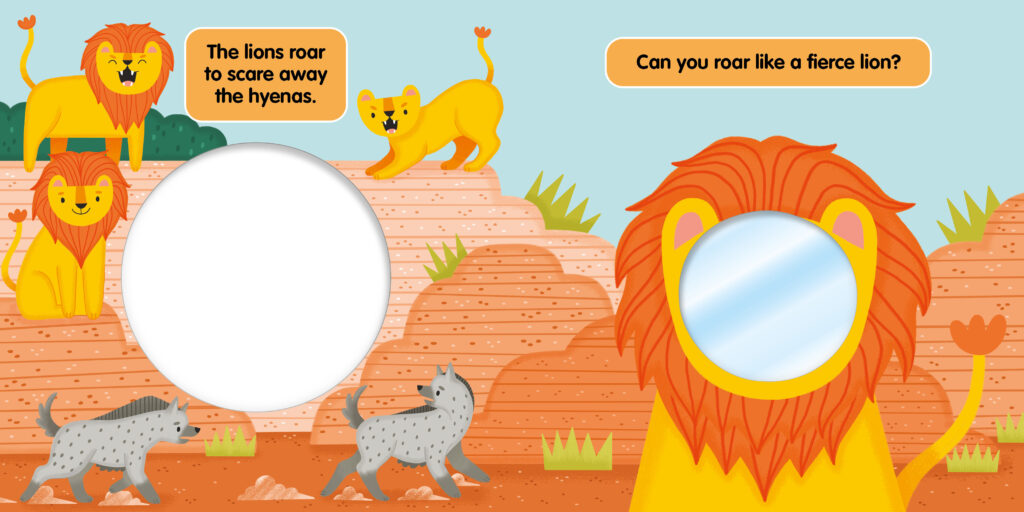 Can you roar like a lion? Or chatter like a monkey? Look in the mirror and do your best funny faces in this clever learning book about animals.