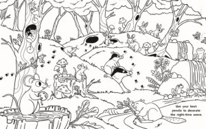 – Double-sided, fold-out colouring scene that is over 3 meters long